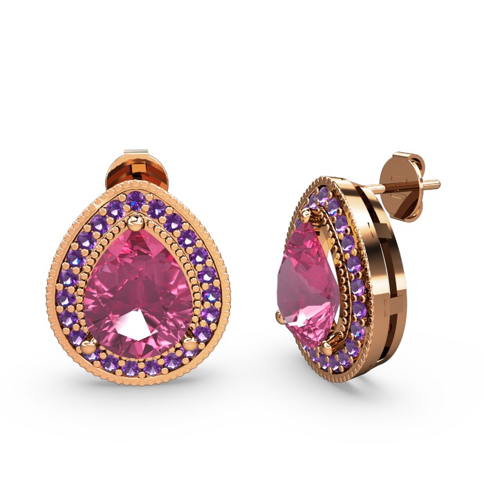 Pembe kuvars ve ametist 925 ayar rose altın kaplama gümüş küpe