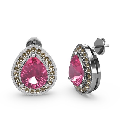 Pembe kuvars ve dumanlı kuvars 18 ayar beyaz altın küpe