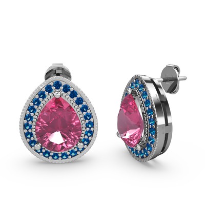 Pembe kuvars ve lab safir 925 ayar gümüş küpe