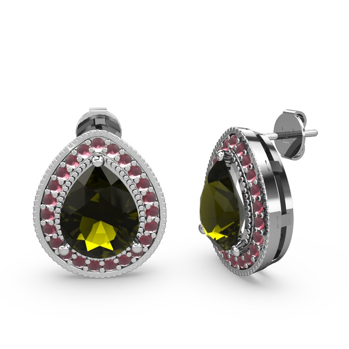 Peridot ve kök yakut 925 ayar gümüş küpe
