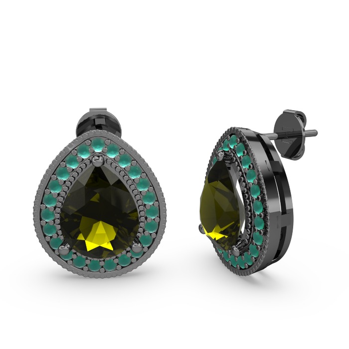 Peridot ve kök zümrüt 925 ayar siyah rodyum kaplama gümüş küpe