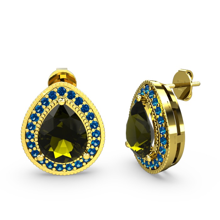 Peridot ve lab safir 14 ayar altın küpe