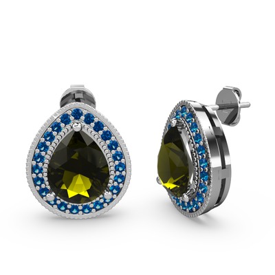 Peridot ve lab safir 8 ayar beyaz altın küpe