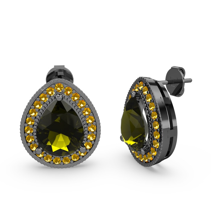 Peridot ve sitrin 925 ayar siyah rodyum kaplama gümüş küpe