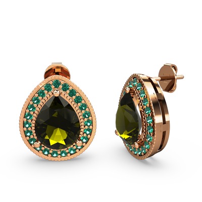 Peridot ve yeşil kuvars 925 ayar rose altın kaplama gümüş küpe