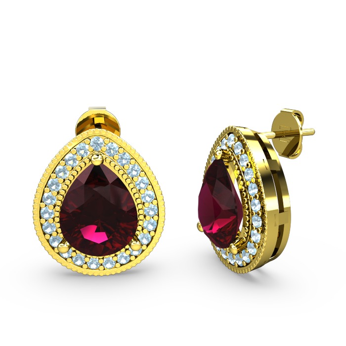 Rodolit garnet ve akuamarin 925 ayar altın kaplama gümüş küpe