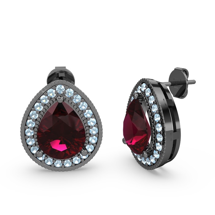 Rodolit garnet ve akuamarin 925 ayar siyah rodyum kaplama gümüş küpe