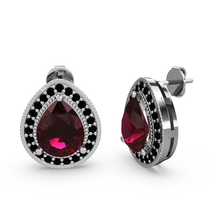 Rodolit garnet ve siyah zirkon 8 ayar beyaz altın küpe