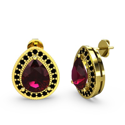 Rodolit garnet ve siyah zirkon 925 ayar altın kaplama gümüş küpe