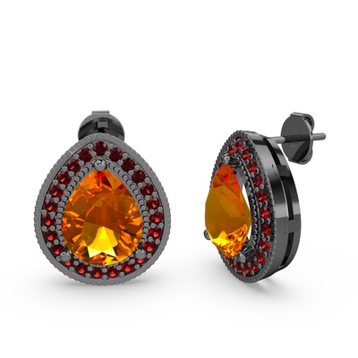 Sitrin ve garnet 925 ayar siyah rodyum kaplama gümüş küpe