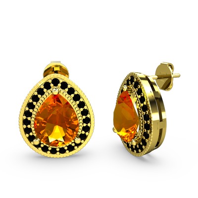 Sitrin ve siyah zirkon 925 ayar altın kaplama gümüş küpe