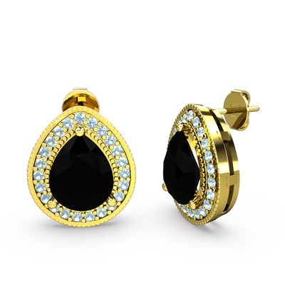 Siyah zirkon ve akuamarin 18 ayar altın küpe