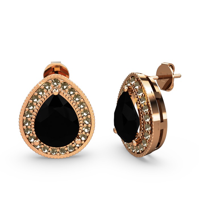 Siyah zirkon ve dumanlı kuvars 925 ayar rose altın kaplama gümüş küpe