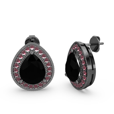 Siyah zirkon ve kök yakut 925 ayar siyah rodyum kaplama gümüş küpe