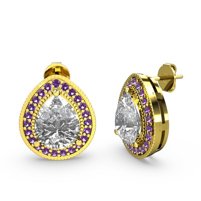 Swarovski ve ametist 18 ayar altın küpe
