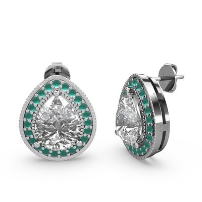 Swarovski ve kök zümrüt 8 ayar beyaz altın küpe