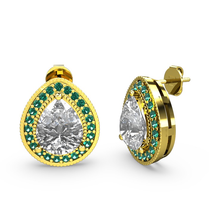 Swarovski ve yeşil kuvars 14 ayar altın küpe