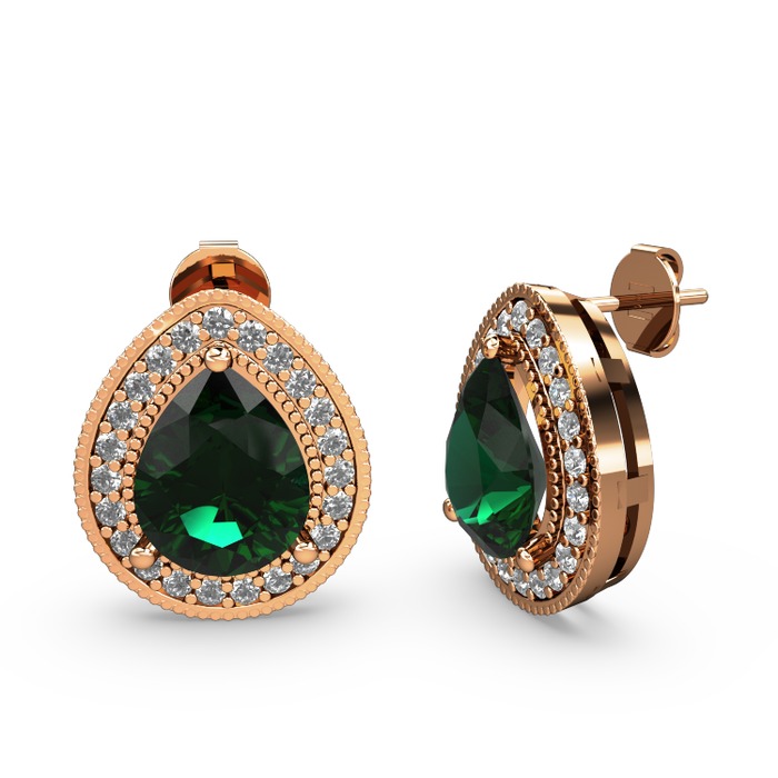 Yeşil kuvars ve beyaz zirkon 18 ayar rose altın küpe
