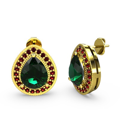 Yeşil kuvars ve garnet 18 ayar altın küpe