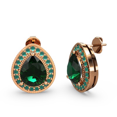 Yeşil kuvars ve kök zümrüt 18 ayar rose altın küpe