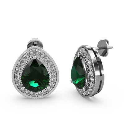 Yeşil kuvars ve pırlanta 14 ayar beyaz altın küpe (0.528 karat)