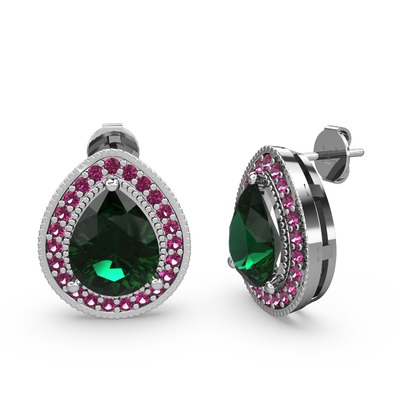 Yeşil kuvars ve rodolit garnet 18 ayar beyaz altın küpe