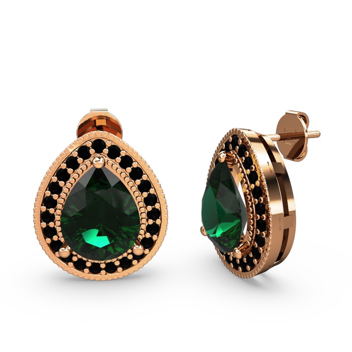 Yeşil kuvars ve siyah zirkon 14 ayar rose altın küpe