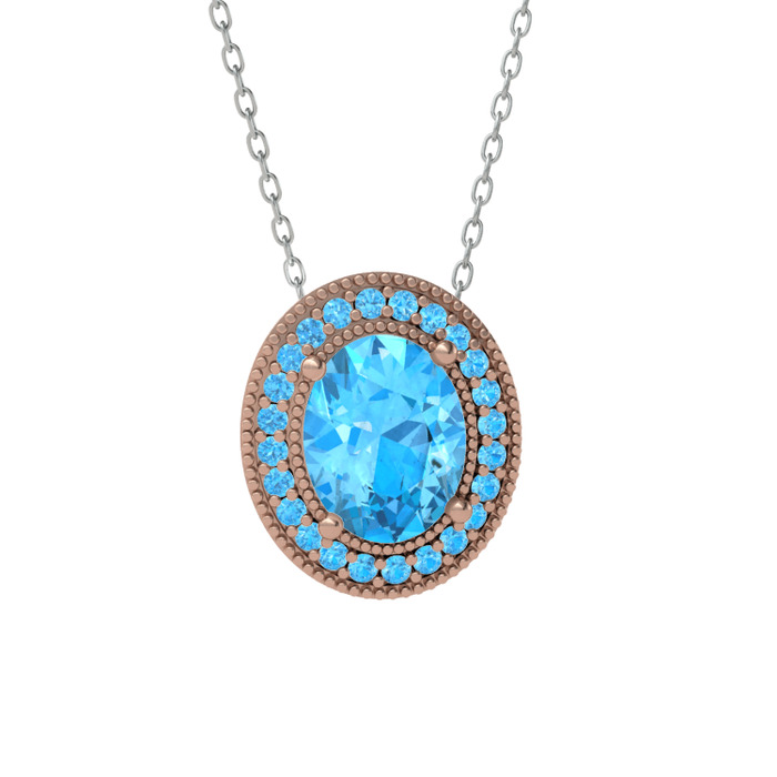 Akuamarin 18 ayar rose altın kolye (40 cm beyaz altın rolo zincir)