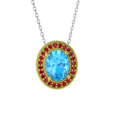 Akuamarin ve garnet 8 ayar altın kolye (40 cm beyaz altın rolo zincir)