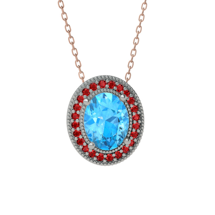 Akuamarin ve garnet 925 ayar gümüş kolye (40 cm gümüş rolo zincir)