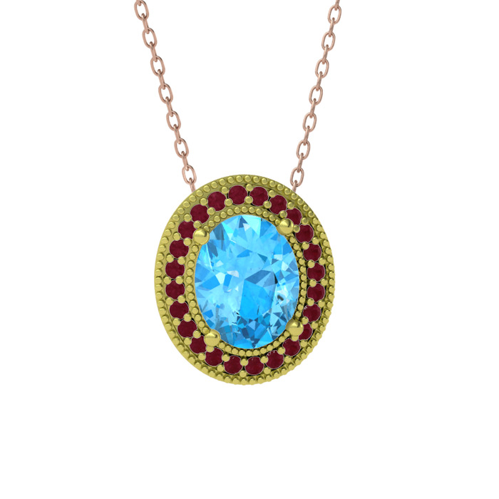 Akuamarin ve kök yakut 8 ayar altın kolye (40 cm gümüş rolo zincir)