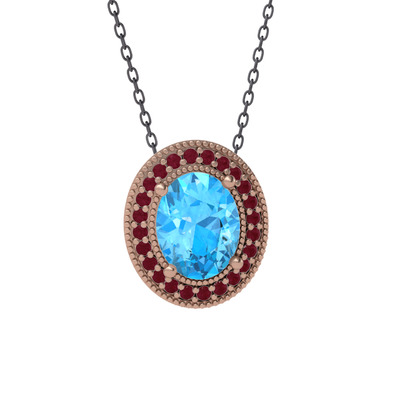 Akuamarin ve kök yakut 8 ayar rose altın kolye (40 cm gümüş rolo zincir)