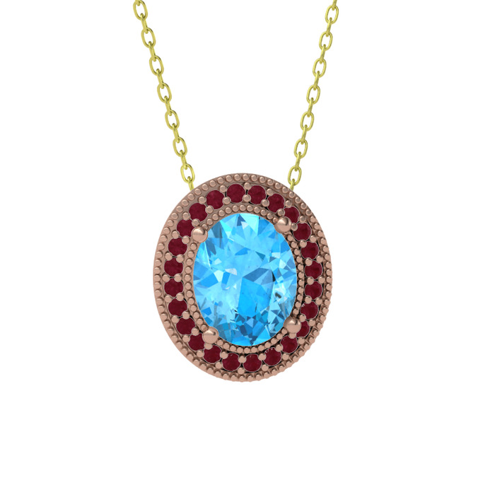 Akuamarin ve kök yakut 925 ayar rose altın kaplama gümüş kolye (40 cm gümüş rolo zincir)