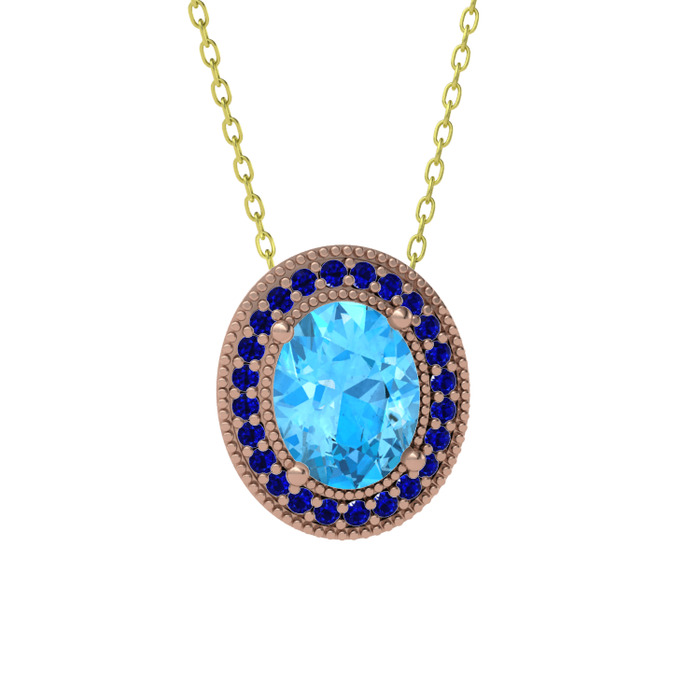 Akuamarin ve lab safir 18 ayar rose altın kolye (40 cm altın rolo zincir)