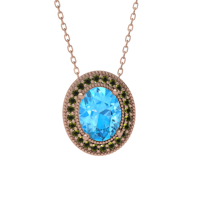 Akuamarin ve peridot 14 ayar rose altın kolye (40 cm rose altın rolo zincir)