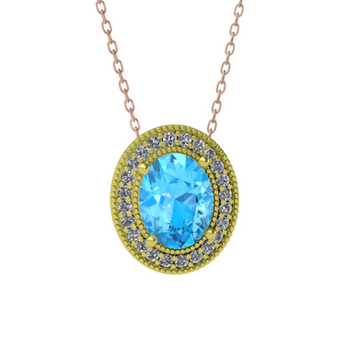 Akuamarin ve pırlanta 8 ayar altın kolye (0.264 karat, 40 cm rose altın rolo zincir)