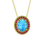 Akuamarin ve rodolit garnet 8 ayar altın kolye (40 cm altın rolo zincir)