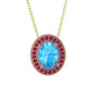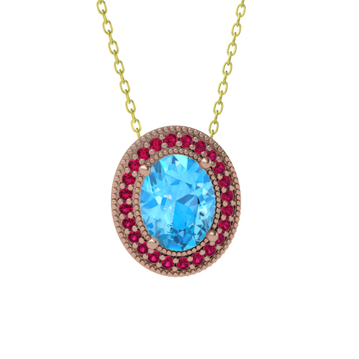 Akuamarin ve rodolit garnet 925 ayar rose altın kaplama gümüş kolye (40 cm altın rolo zincir)