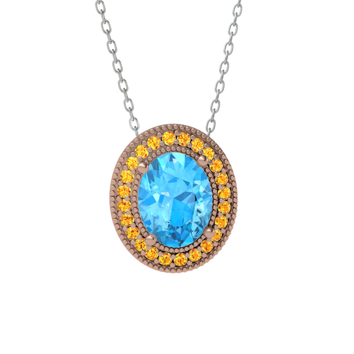 Akuamarin ve sitrin 8 ayar rose altın kolye (40 cm beyaz altın rolo zincir)