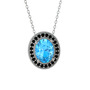 Akuamarin ve siyah zirkon 18 ayar beyaz altın kolye (40 cm gümüş rolo zincir)