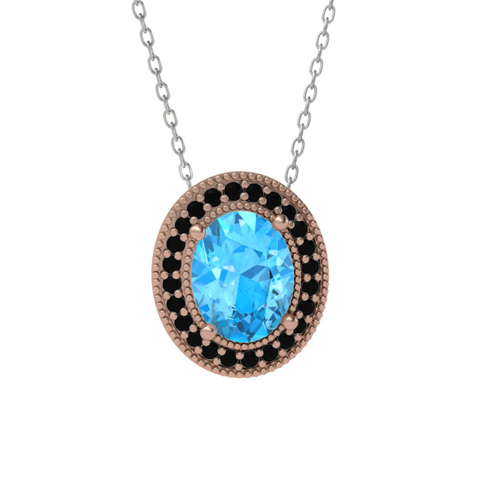 Akuamarin ve siyah zirkon 925 ayar rose altın kaplama gümüş kolye (40 cm beyaz altın rolo zincir)