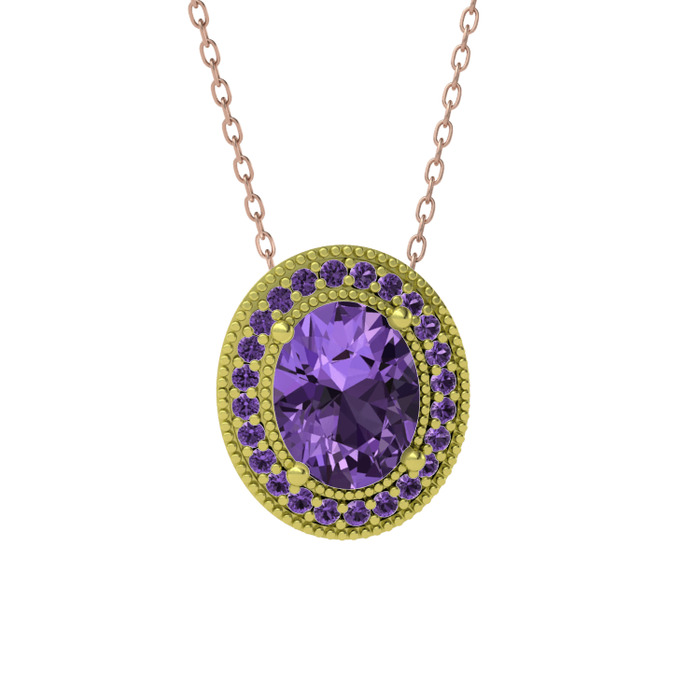 Ametist 8 ayar altın kolye (40 cm rose altın rolo zincir)