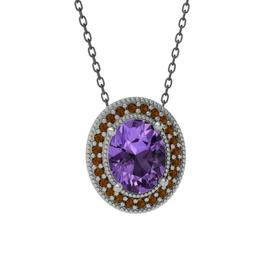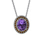 Ametist ve dumanlı kuvars 14 ayar beyaz altın kolye (40 cm gümüş rolo zincir)