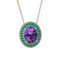 Ametist ve kök zümrüt 18 ayar beyaz altın kolye (40 cm rose altın rolo zincir)