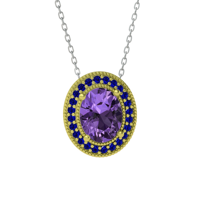Ametist ve lab safir 14 ayar altın kolye (40 cm beyaz altın rolo zincir)