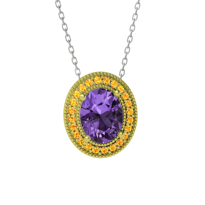 Ametist ve sitrin 18 ayar altın kolye (40 cm beyaz altın rolo zincir)