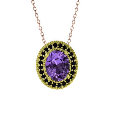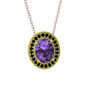 Ametist ve siyah zirkon 18 ayar altın kolye (40 cm rose altın rolo zincir)