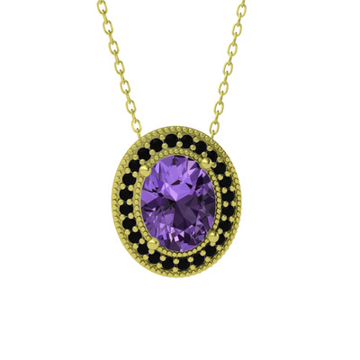 Ametist ve siyah zirkon 8 ayar altın kolye (40 cm altın rolo zincir)
