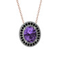 Ametist ve siyah zirkon 925 ayar gümüş kolye (40 cm rose altın rolo zincir)