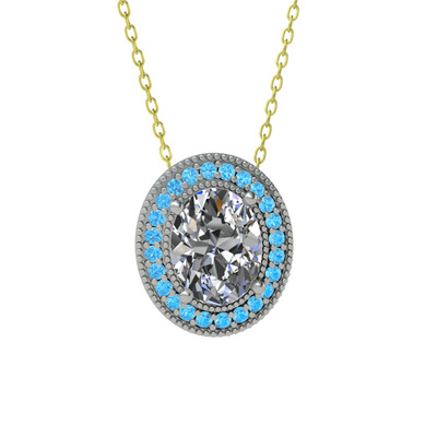 Beyaz zirkon ve akuamarin 14 ayar beyaz altın kolye (40 cm gümüş rolo zincir)